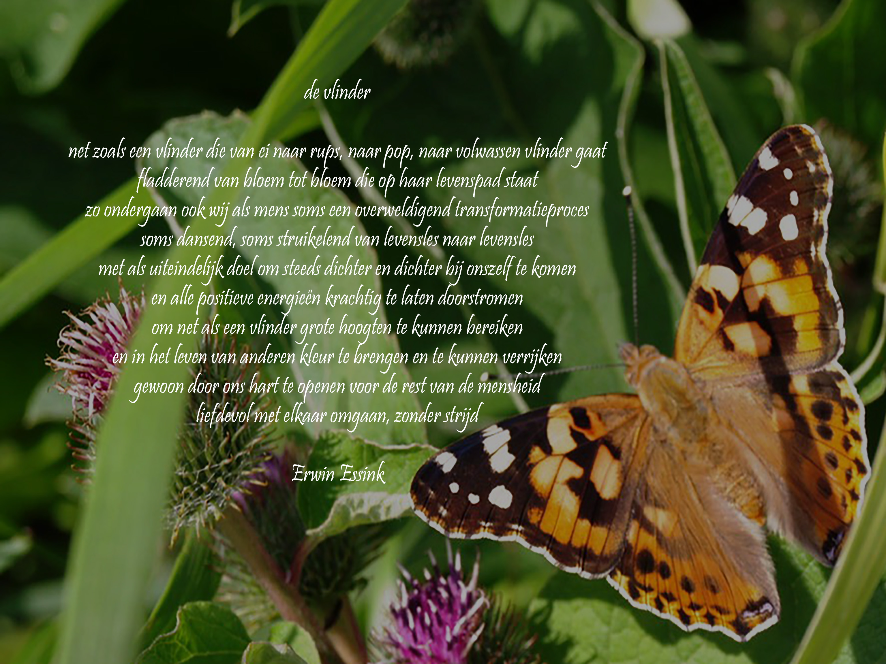 Op mijn levenspad kom ik gelukkig geregeld mensen tegen die graag hun emoties met mij delen. Op basis hiervan schrijf ik soms gedichten om hen verder te helpen op hun levenspad. Deze gedichten combineer ik met natuurfoto’s.